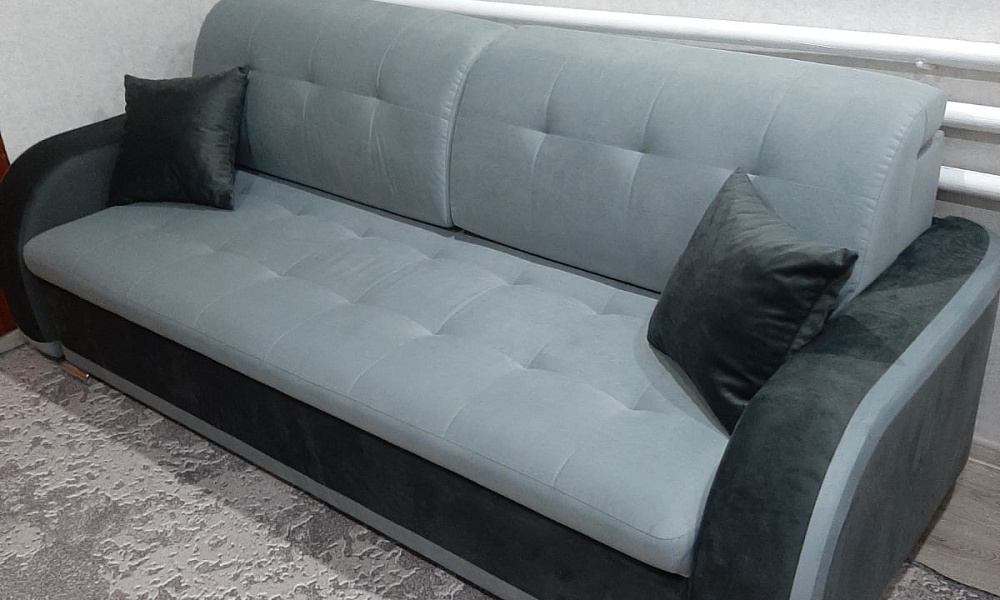 Очень комфортный мягкий диван , который разбирается в полноценную двухспальную  кровать. Материал - шинил, легко чиститься пылесосом.