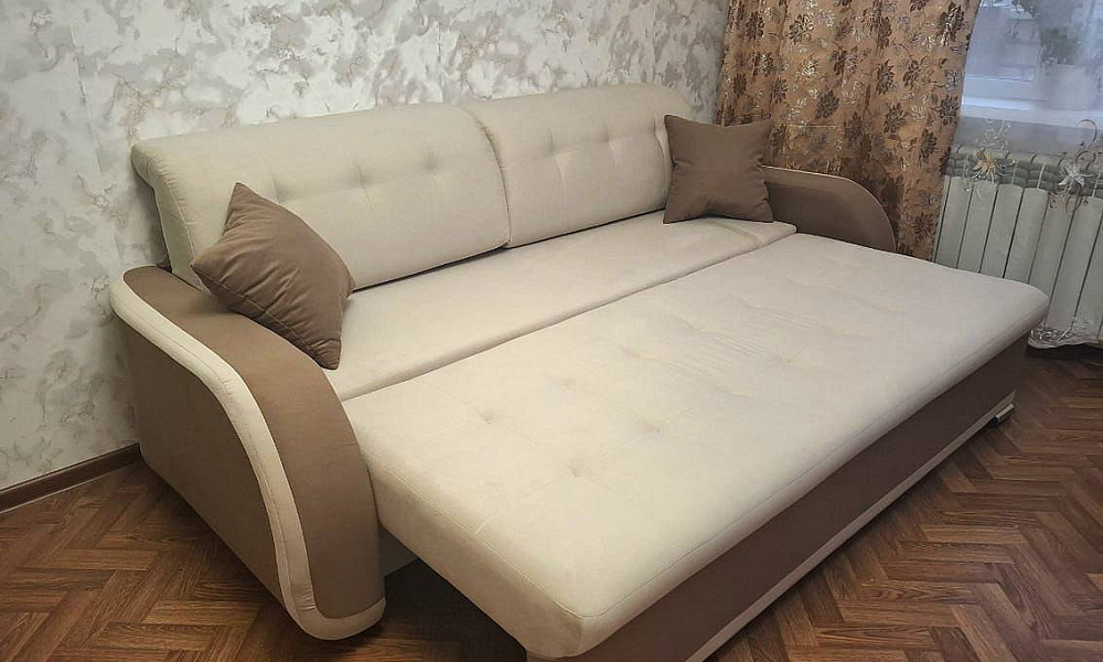 Параметры соответствуют, цвет соответствует, фурнитура вся установлена, при сборке требуется только боковины вставить в пазики, и заднюю планку в пазики вставить, и положить одну половинку на другую, инструкция и паспорт есть. Модель понравилась большими подушками, которые, даже разложив диван, можно поставить к стенке. Сама конструкция дивана предполагает доступ к ящикам из середины, с краю вы к ним не доберётесь. Диван покупался и как постоянное спальное место