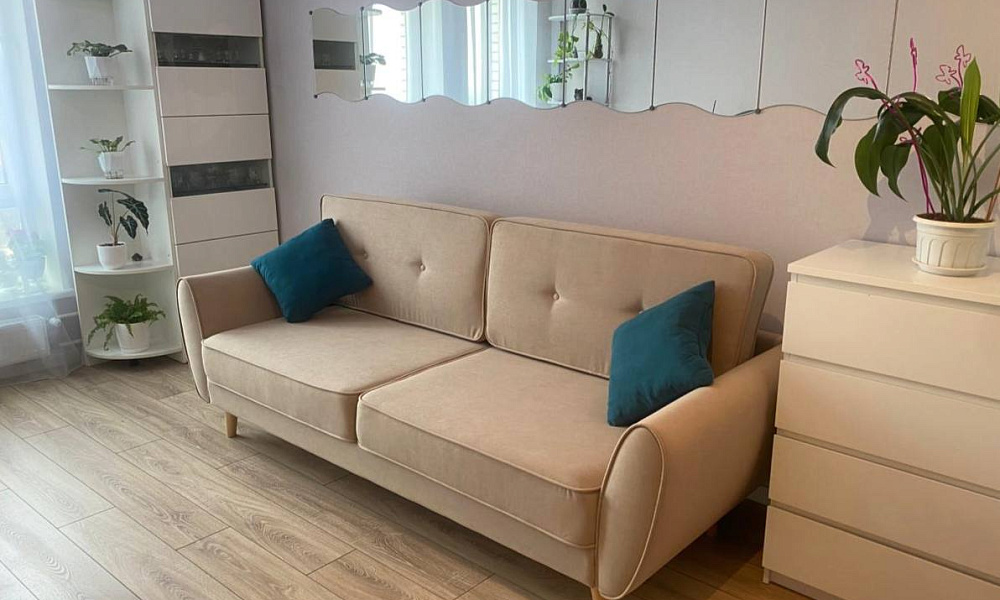 Он оправдал все мои ожидания - чудесный цвет, дизайн и исполнение. Всё как на фото и в описании на сайте. Для квартиры-студии очень комфортный размер. Спала на нём пока один раз. В меру жёсткий, что меня вполне устраивает.