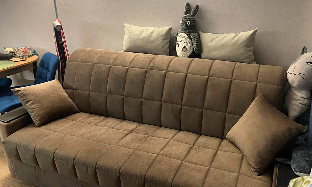 Диван очень хорошо вписался, и сам по себе хороший) спать ещё не пробовали, но сидеть хорошо) и спасибо за оперативность, сказали ждать месяц, а привезли уже через неделю