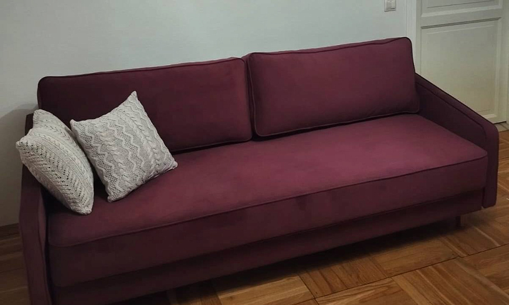 Сам диван то, что мне было нужно: средней жёсткости , с независимым пружинным блоком. Цвет, конечно, красивый, акцентный. Комната только что после ремонта, все хочется поменять. Подберу новую тюль, нарисую несколько интерьерных картин, тогда будет гармонично.