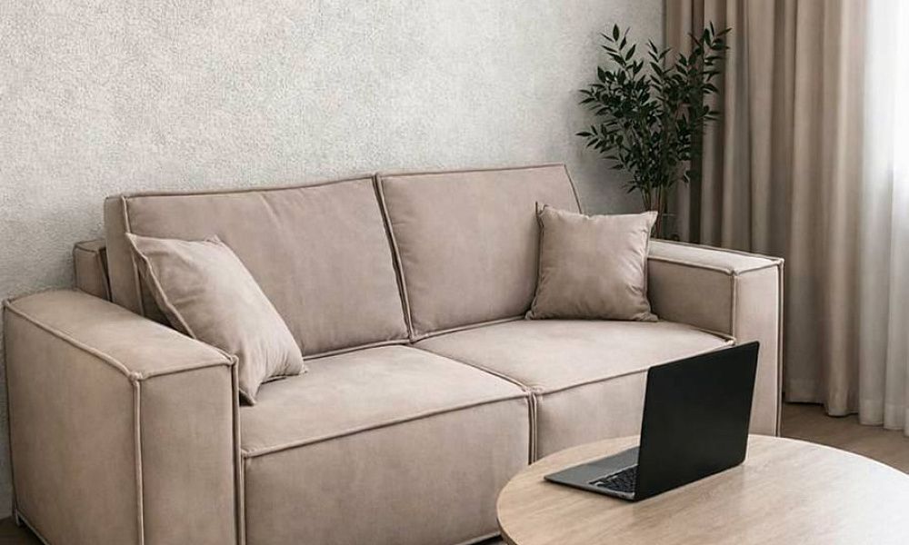 Диван уже какое то время в эксплуатации, никаких замечаний нет. К интерьеру прекрасно подошёл. Очень удобный, ткань безумно приятная. И не только для меня — кот целыми днями по дивану скачет, но не подрал :)