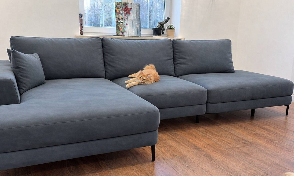 Заказываю не первый раз, нравится материал, и нравится , что животные его не портят. Вписался диван отлично, как и планировалось, цвет играет в зависимости от освещения - то синий , то серый , интересно получилось. Спасибо большое!