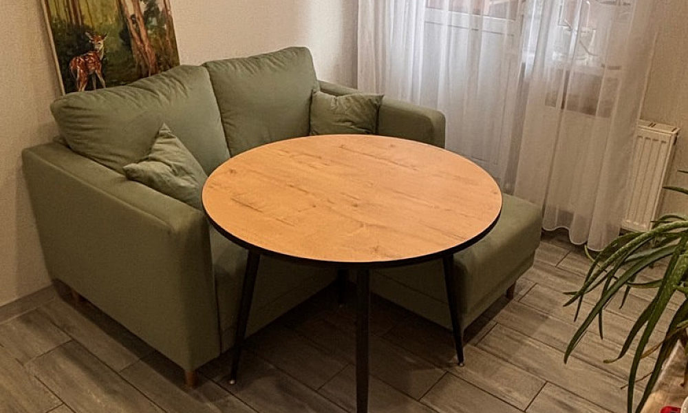Очень комфортный мягкий диван , который разбирается в полноценную двухспальную кровать. Материал - шинил, легко чиститься пылесосом.