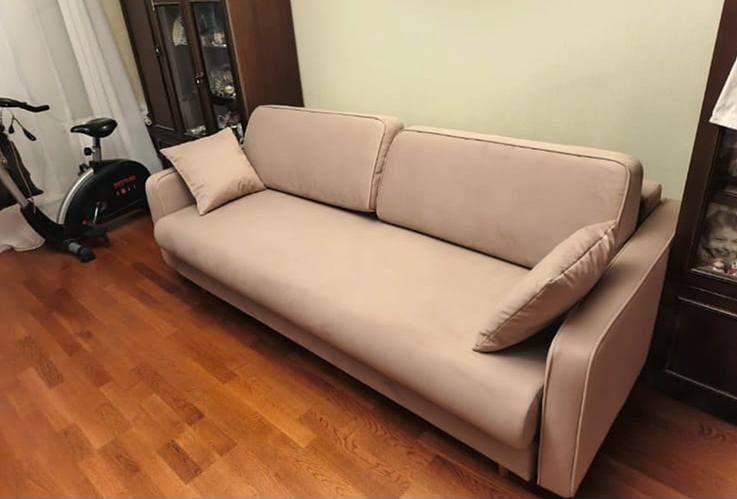 Диван очень нравится. Удобный, красивый. Особенно здорово, что подлокотники широкие и ящики для белья вместительные.