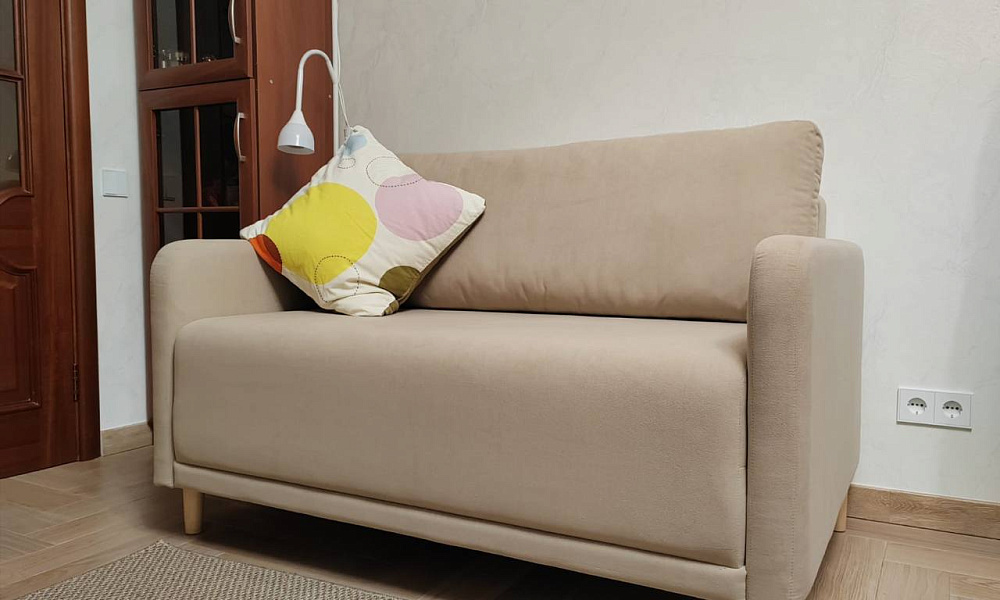 Диван удобный, подлокотники мягкие, без углов. В разложенном виде границы между блоками не чувствуются, все одинаковой высоты и жёсткости. Занимает не много места в комнате. Обивка приятная на ощупь. Цвет как на фото.