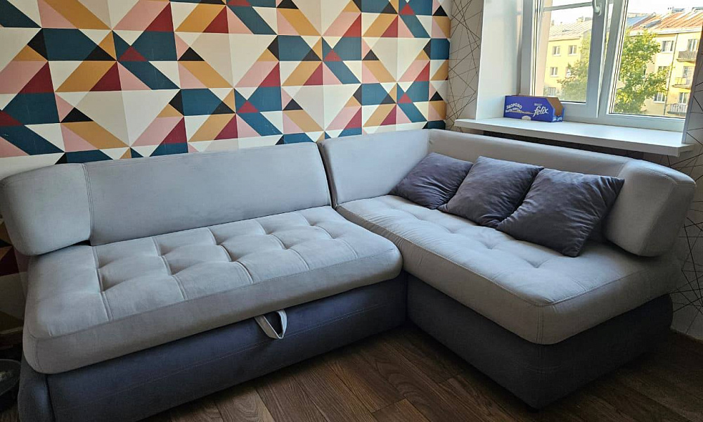 Очень большой выбор диванов и рассматривала несколько моделей, но остановилась именно на Кьянти. Понравился размер, наличие механизма - еврокнижка, наличие ящиков для белья и действительно современный дизайн.
