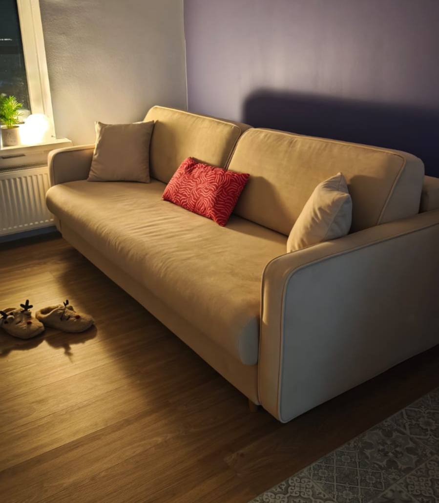 Выглядит замечательно. Обивка приятная на ощупь. Внутренний наполнитель упругий. Хорошо, что есть прострочка, надеемся, что провисаний ткани не будет. Раскладывается легко. Ящики для белья не очень глубокие. В целом, покупкой довольны!