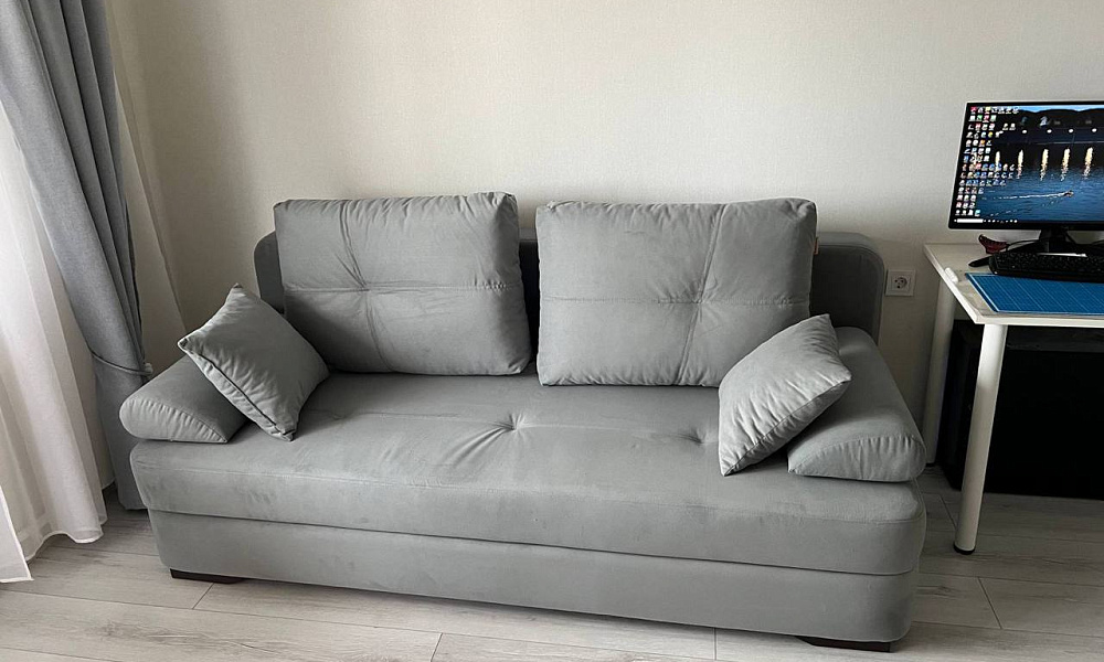 Хороший диван, используем как спальное место, хорошо вписался в интерьер, приятный цвет. Спасибо за качество