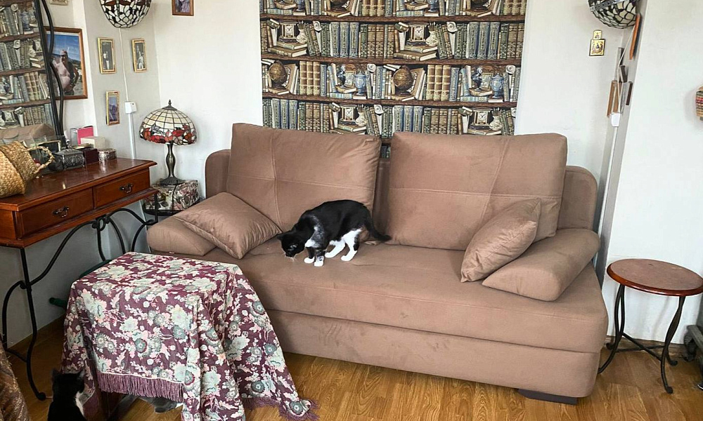 Диван уже какое то время в эксплуатации, никаких замечаний нет. К интерьеру прекрасно подошёл. Очень удобный, ткань безумно приятная. И не только для меня — кот целыми днями по дивану скачет, но не подрал :)
