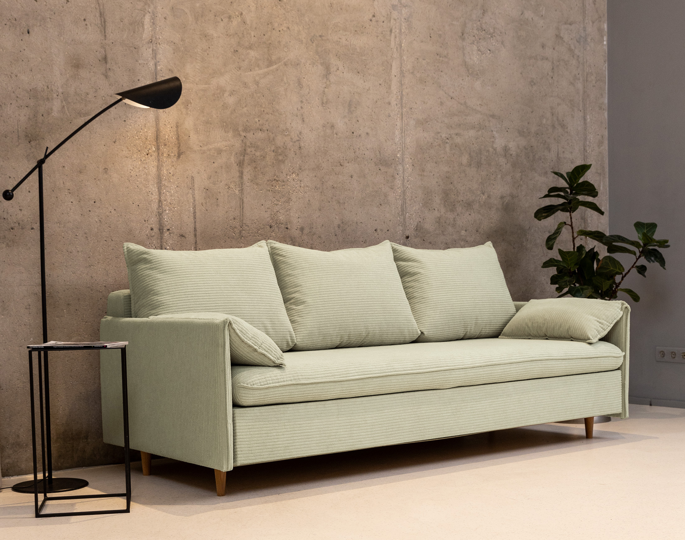 Мягкие подушки служат подлокотниками, обеспечивая комфортное размещение на диване. Кроме того, их можно легко убрать, чтобы увеличить пространство для сна.