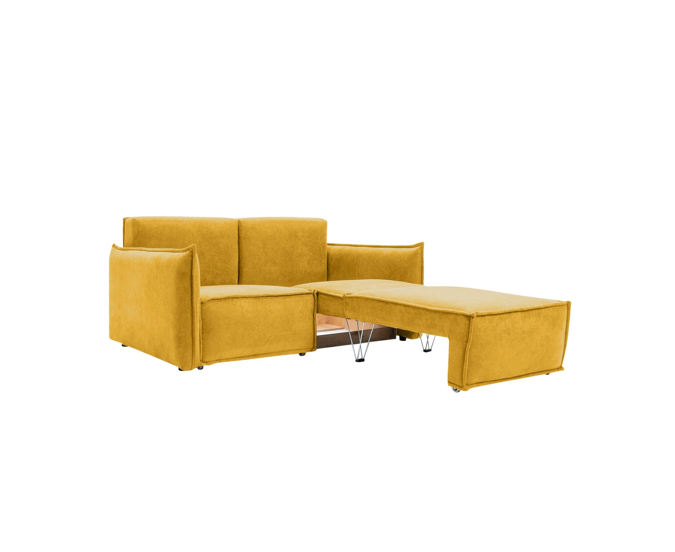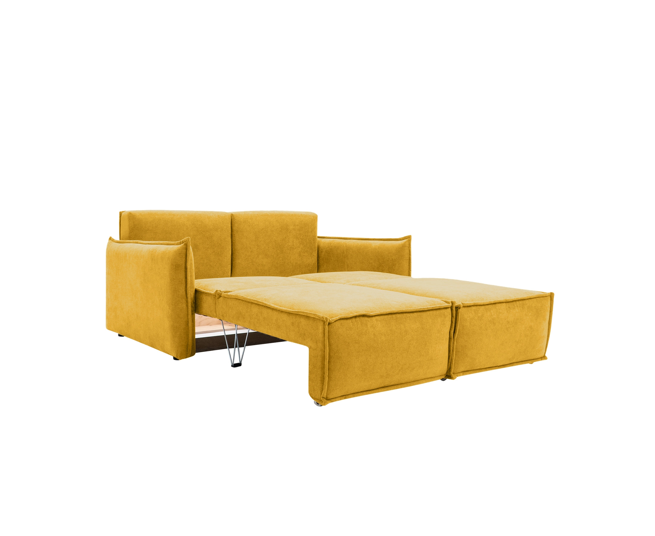 В собранном виде занимает очень маленькую площадь, в разложенном — образует просторное и удобное спальное место для двоих.