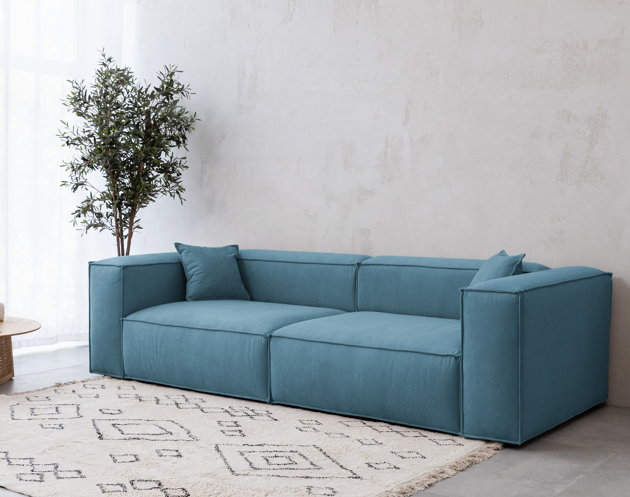 Современный тренд в мире мягкой мебели — диван с низкой и мягкой спинкой без подушек. Он органично смотрится в центре гостиной, создавая ощущение воздушности и свободы. Глубокая посадка обеспечивает комфорт, а отсутствие приспинных подушек избавляет от необходимости дополнительного хранения.