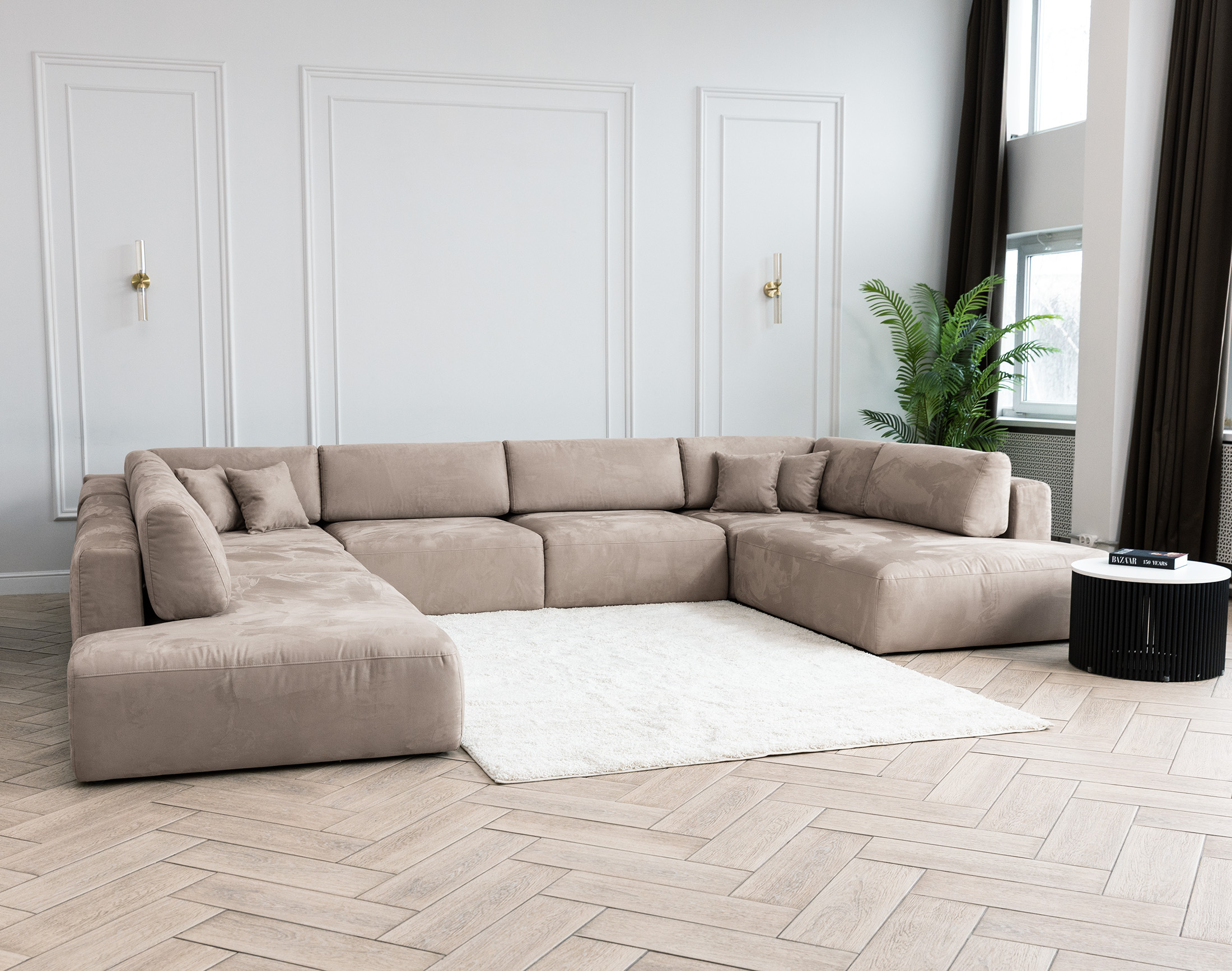 Угловая секция Сиена Бежевый велюр Triniti с грязеотталкивающей технологией