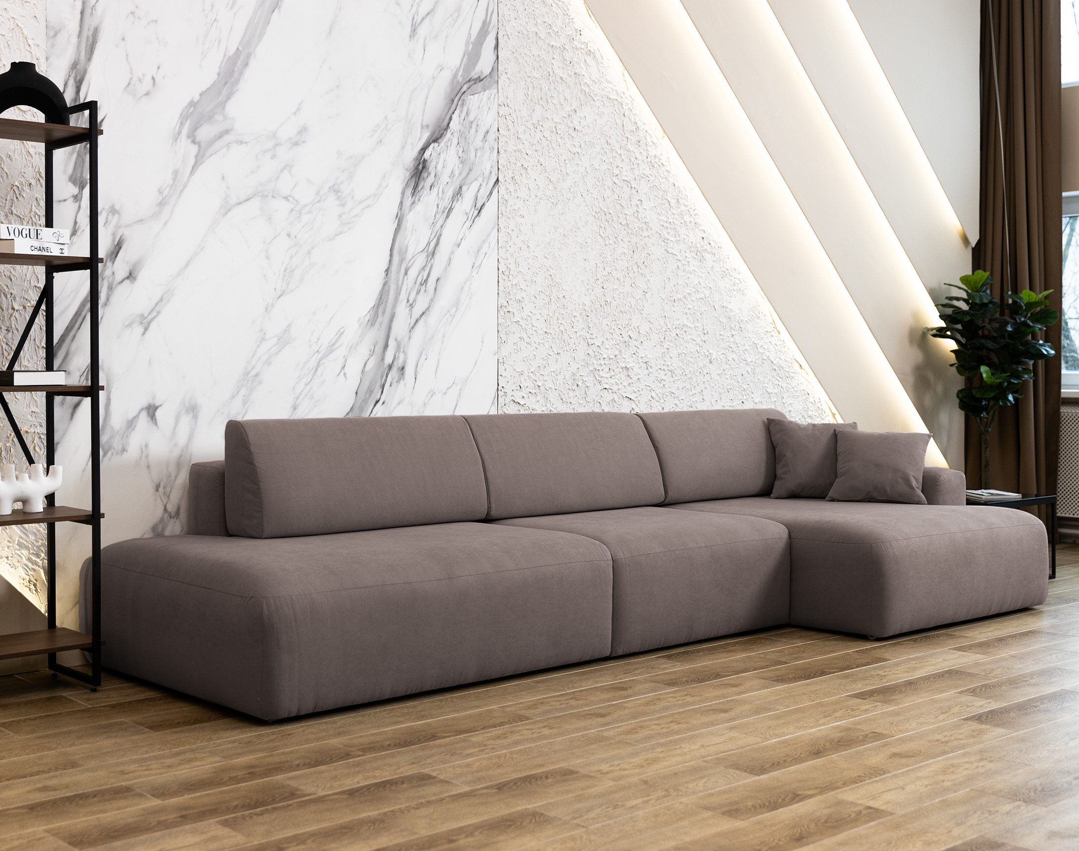 Угловой диван Бергамо Темно-бежевый шенилл Lounge еврокнижка за 108 990 ₽. В наличии!