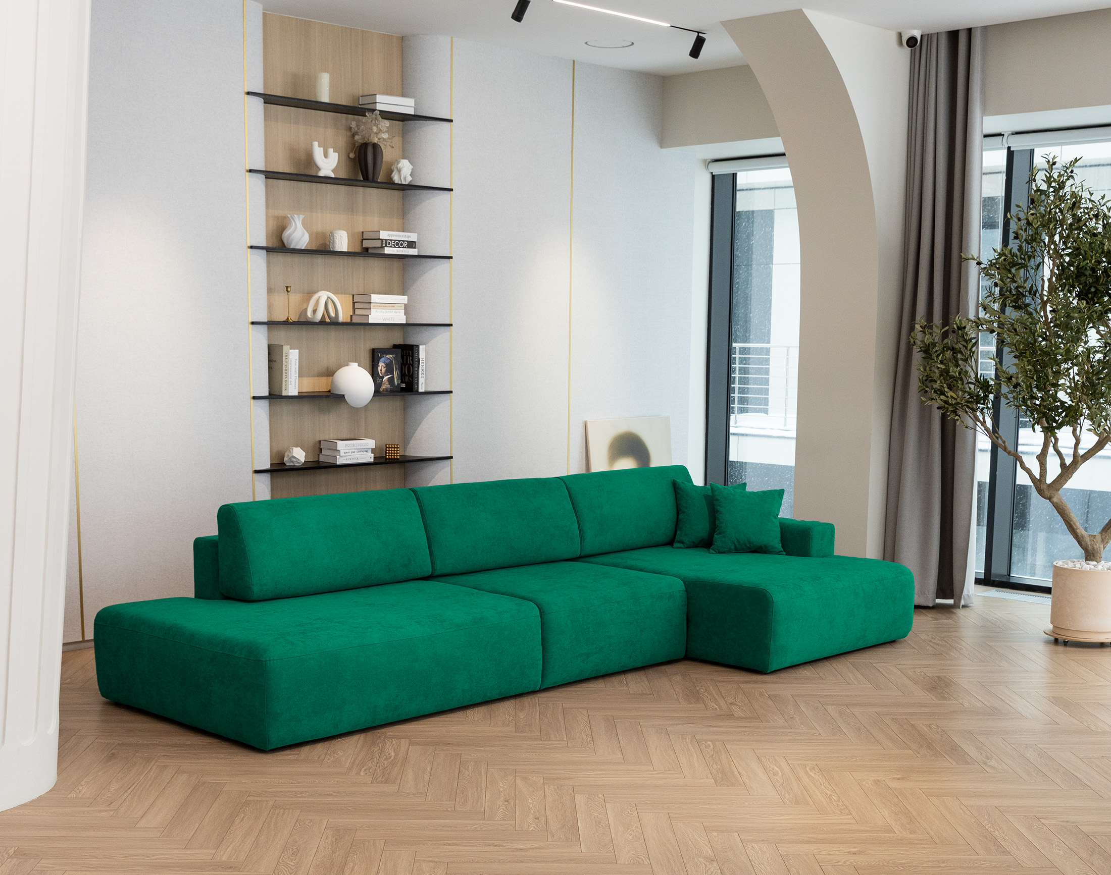 Угловой диван Бергамо Зеленый шенилл Lounge еврокнижка за 139 986 ₽. В наличии!