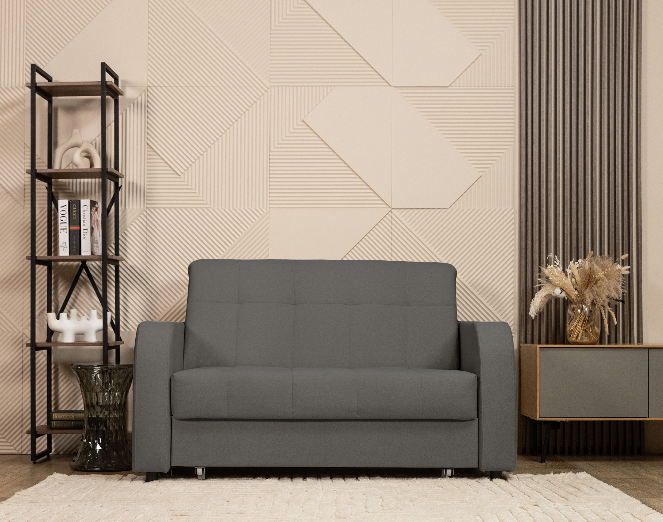 Компактные габариты делают «Берн» удобным решением для любого пространства, а современный дизайн подчёркивает лёгкость и аккуратность формы. Диван легко раскладывается в полноценное спальное место, обеспечивая комфорт как для отдыха, так и для сна.