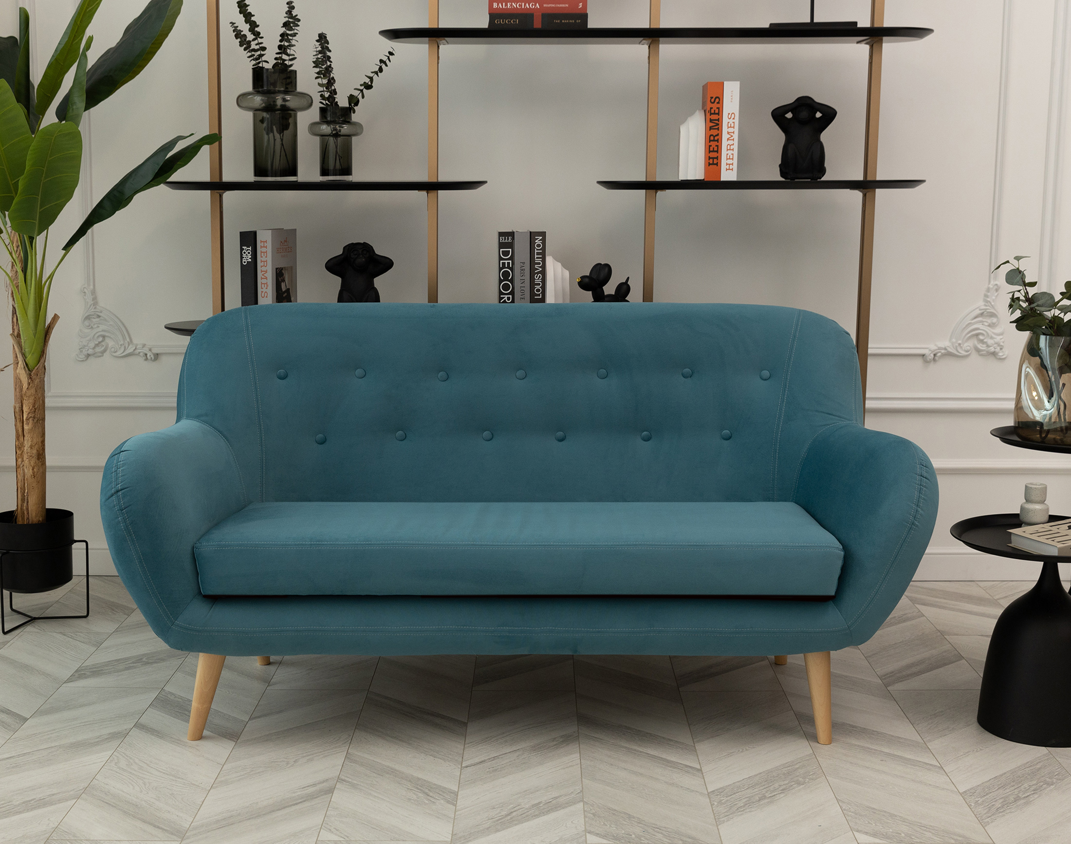 Высокие ножки дивана делают его форму легкой, максимально открывая пространство. А натуральное дерево подчеркивает естественность материалов. Кроме того, такая конструкция упрощает уборку, делая доступным напольное покрытие.