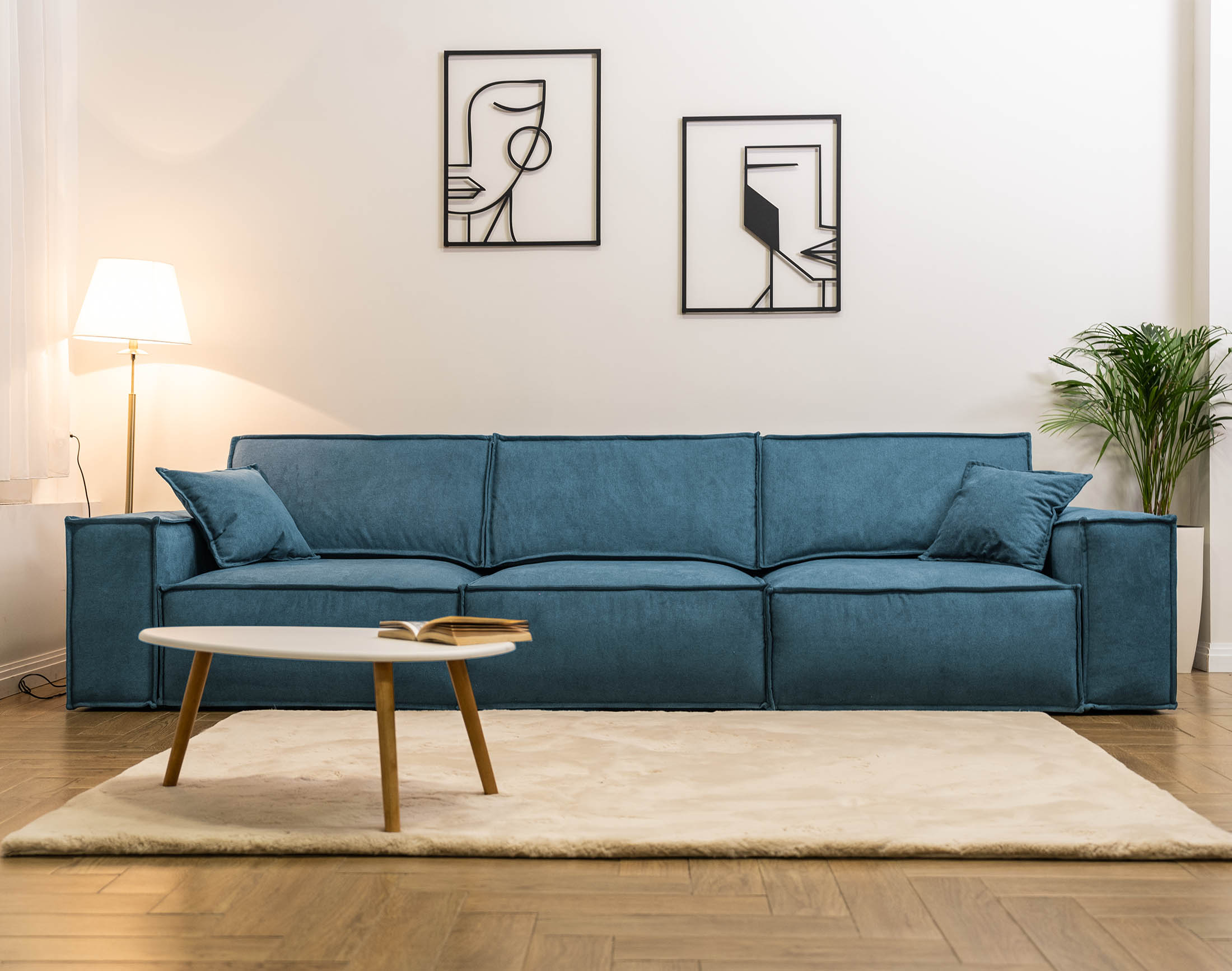 Угловая секция Сиена Лазурный велюр Triniti с грязеотталкивающей технологией
