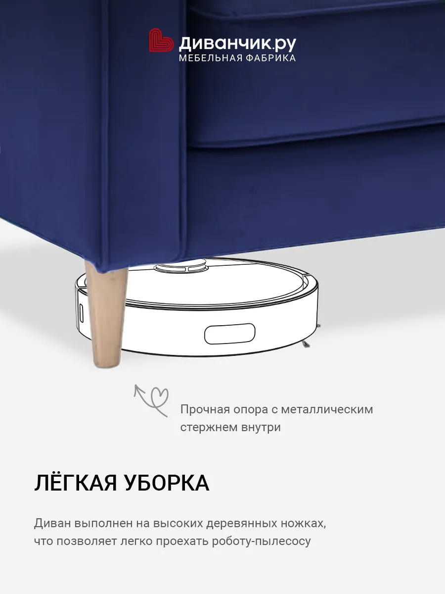 Диван Эланд Синий велюр Triniti с грязеотталкивающей технологией