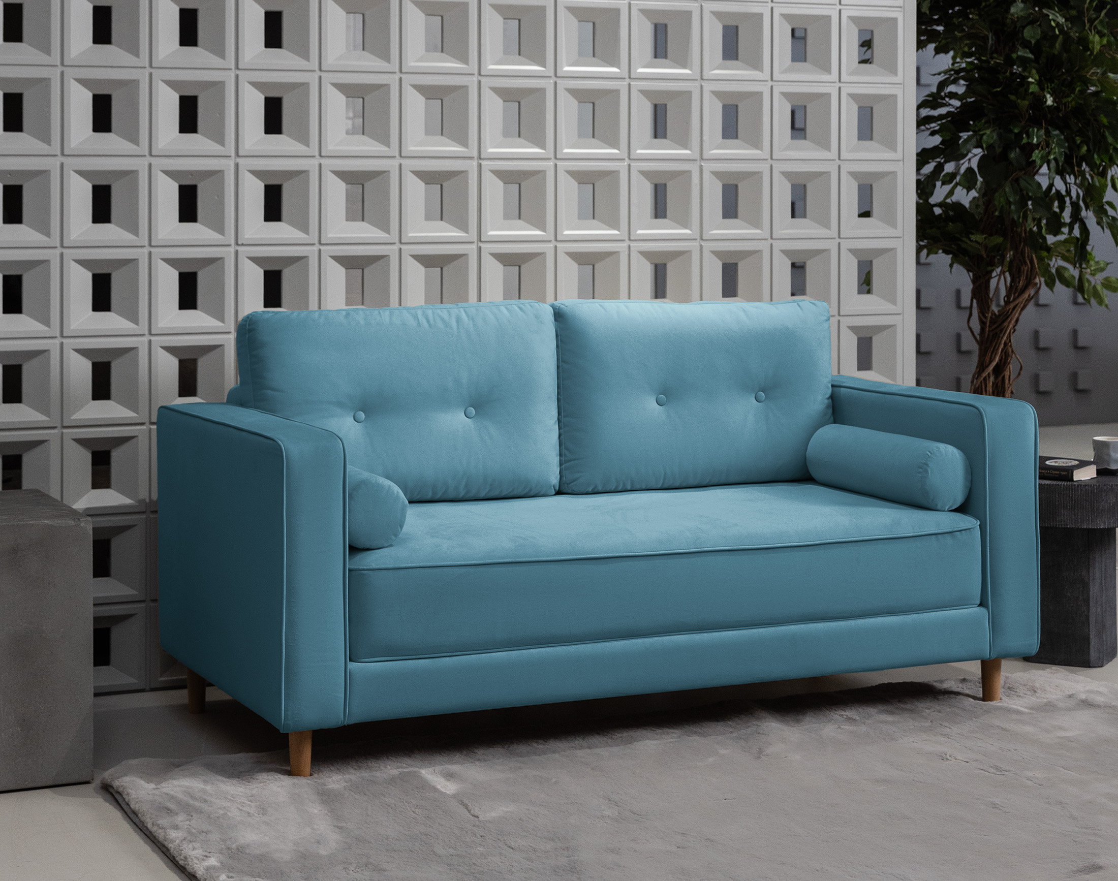 Прямой диван Эланд Велюр Triniti голубого цвета пантограф 49 990 ₽. В наличии!