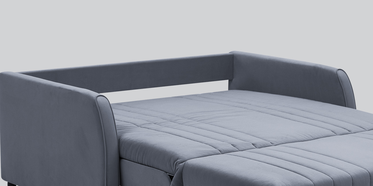 Механизм трансформации устроен по принципу мехов «аккордеона». В сложенном виде — занимает очень маленькую площадь, в растянутом — образует просторное и удобное спальное место. А узкие подлокотники не увеличивают габариты дивана.