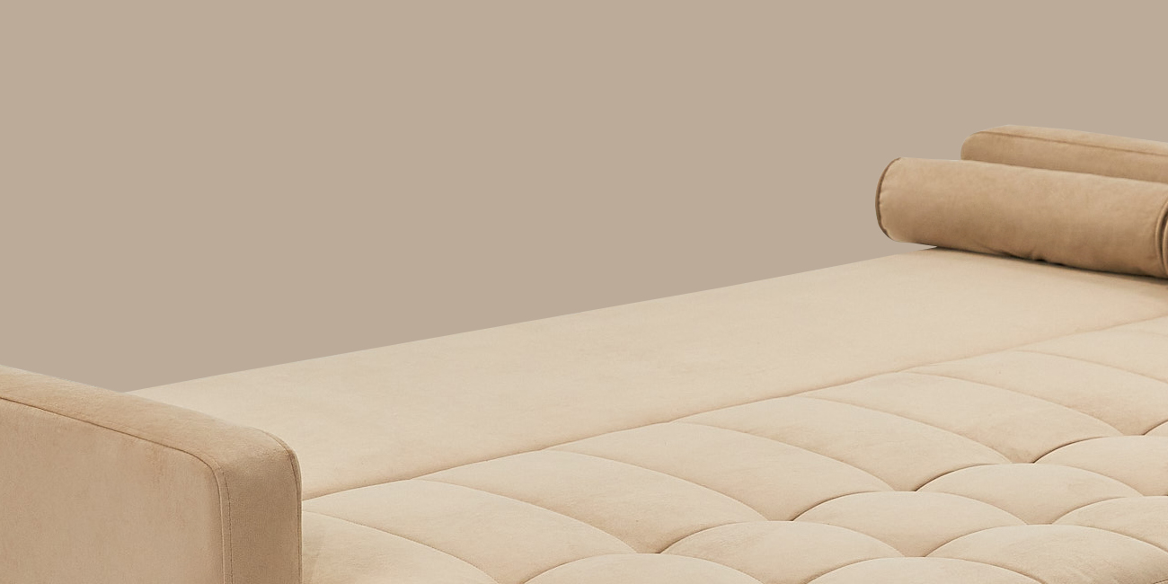 Геометрическая стяжка не только придает дивану визуальную выразительность, но и создает эффект глубины и текстуры. Такой декор также способствует созданию акцентного элемента в помещении, привлекая внимание и добавляя современный штрих.