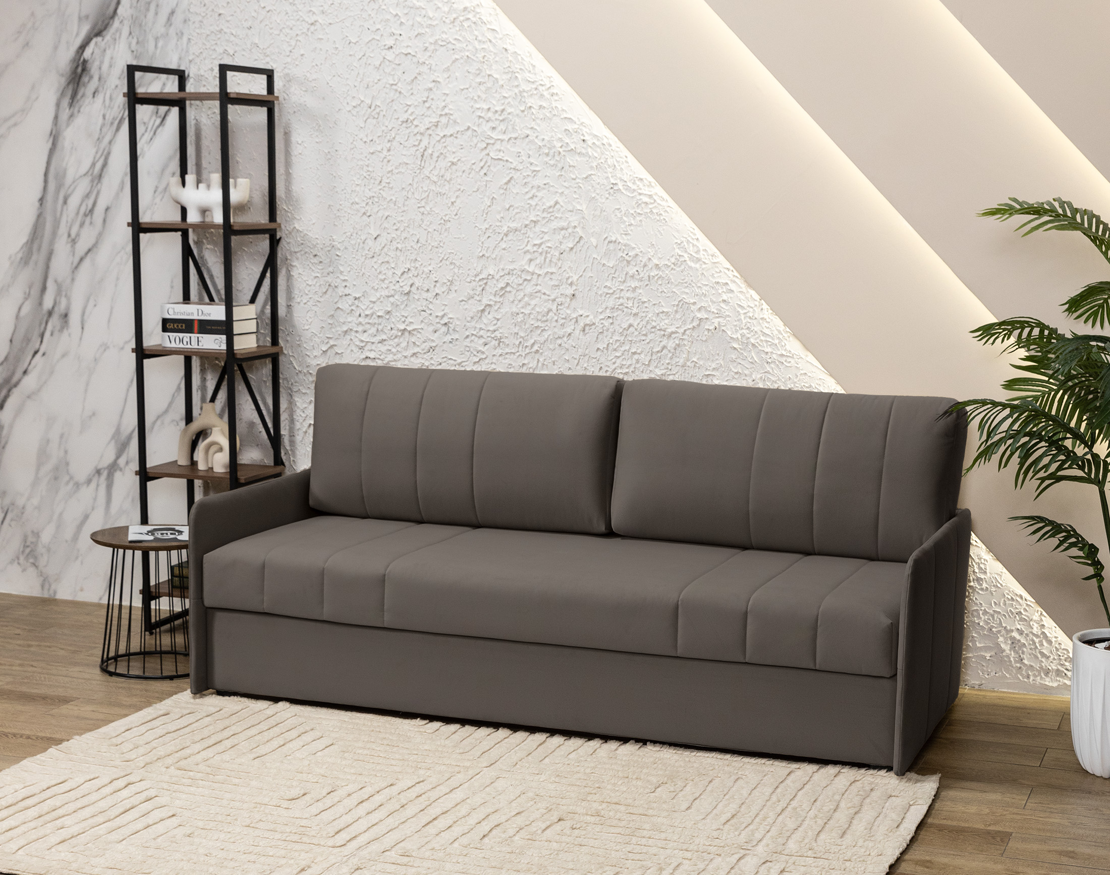 Благодаря узким подлокотникам диван выглядит лёгким и визуально не перегружает пространство. Компактные размеры позволяют разместить его даже в небольших комнатах, сохраняя при этом полноценное место для отдыха.
