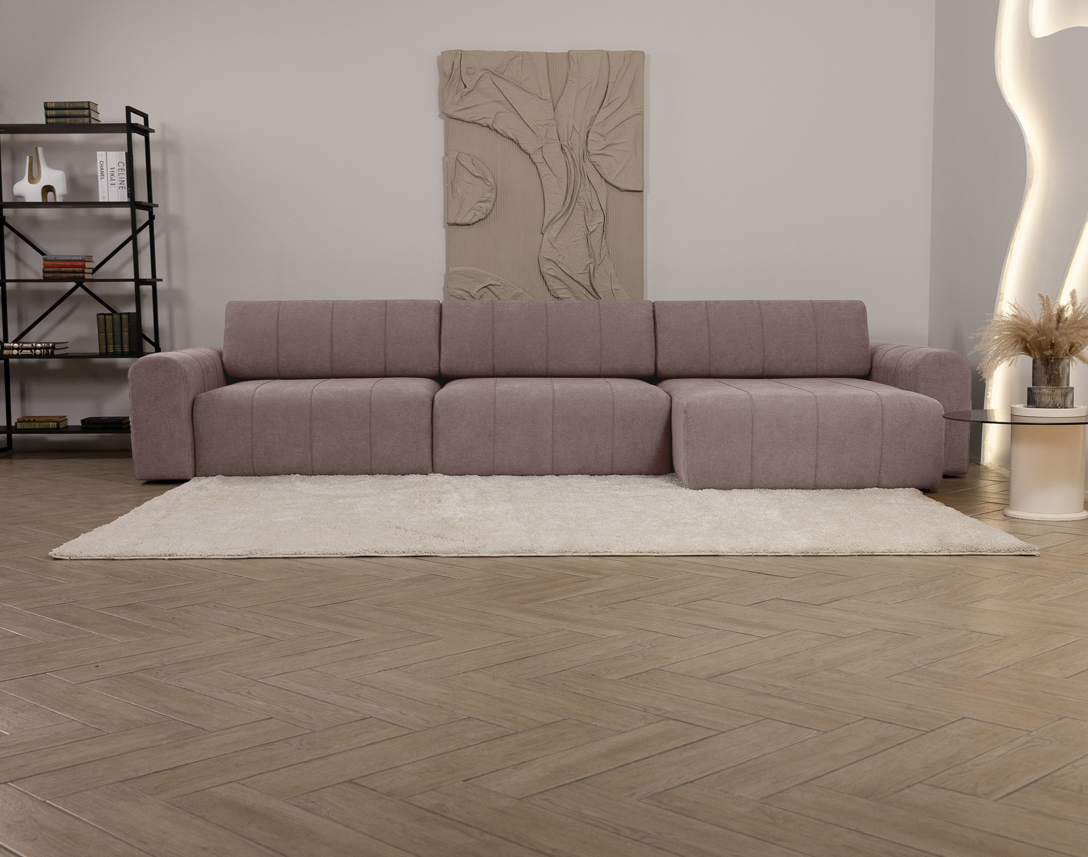Стильная фактура и приятная бархатистая поверхность подчёркивают дизайн мебели, придавая интерьеру современный и гармоничный вид.