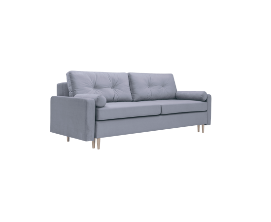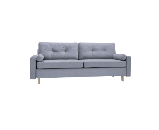 Высокие ножки дивана делают его форму легкой, максимально открывая пространство. А натуральное дерево подчеркивает естественность материалов. Кроме того, такая конструкция упрощает уборку, делая доступным напольное покрытие.