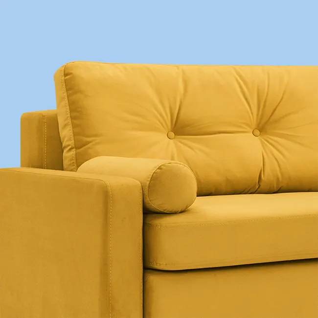 Высокие ножки дивана делают его форму легкой, максимально открывая пространство. А натуральное дерево подчеркивает естественность материалов. Кроме того, такая конструкция упрощает уборку, делая доступным напольное покрытие.