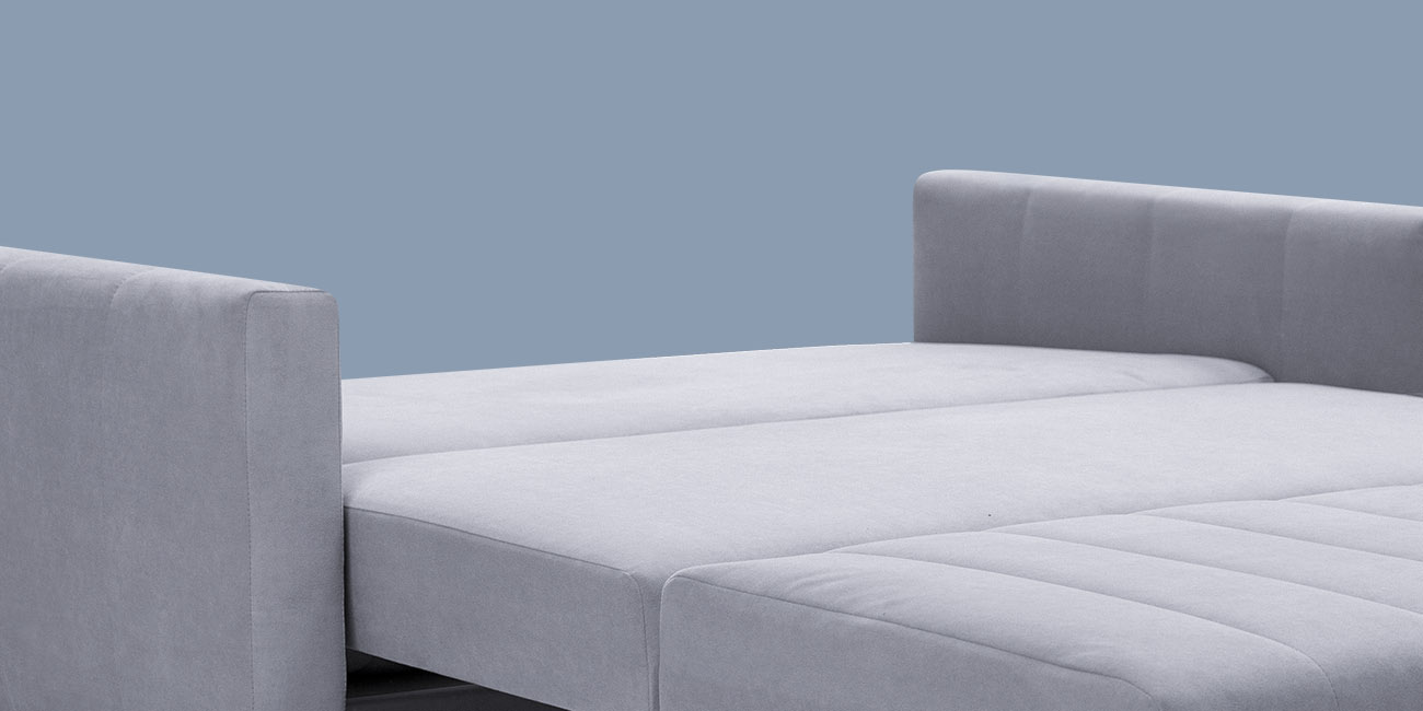 В собранном виде занимает очень маленькую площадь, в разложенном — образует просторное и удобное спальное место. А узкие подлокотники не увеличивают габариты дивана.