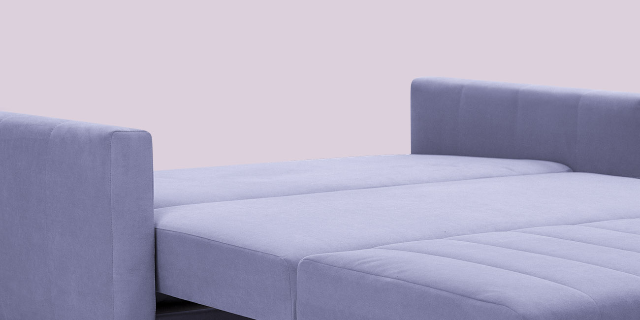 В собранном виде занимает очень маленькую площадь, в разложенном — образует просторное и удобное спальное место. А узкие подлокотники не увеличивают габариты дивана.