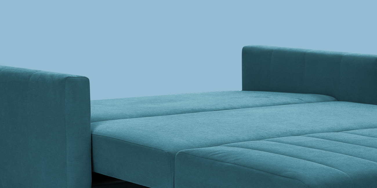 В собранном виде занимает очень маленькую площадь, в разложенном — образует просторное и удобное спальное место. А узкие подлокотники не увеличивают габариты дивана.