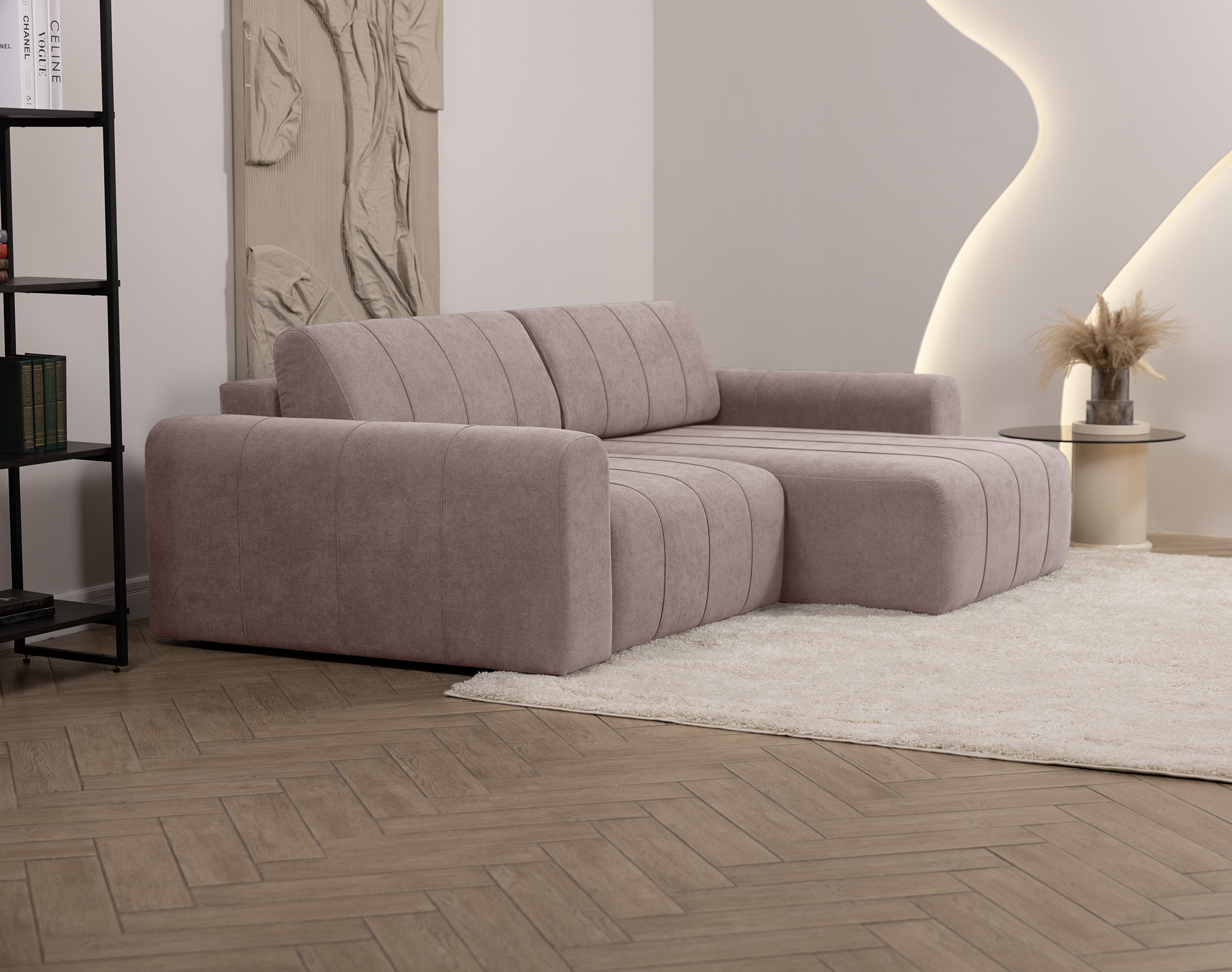 Стильная фактура и приятная бархатистая поверхность подчёркивают дизайн мебели, придавая интерьеру современный и гармоничный вид.