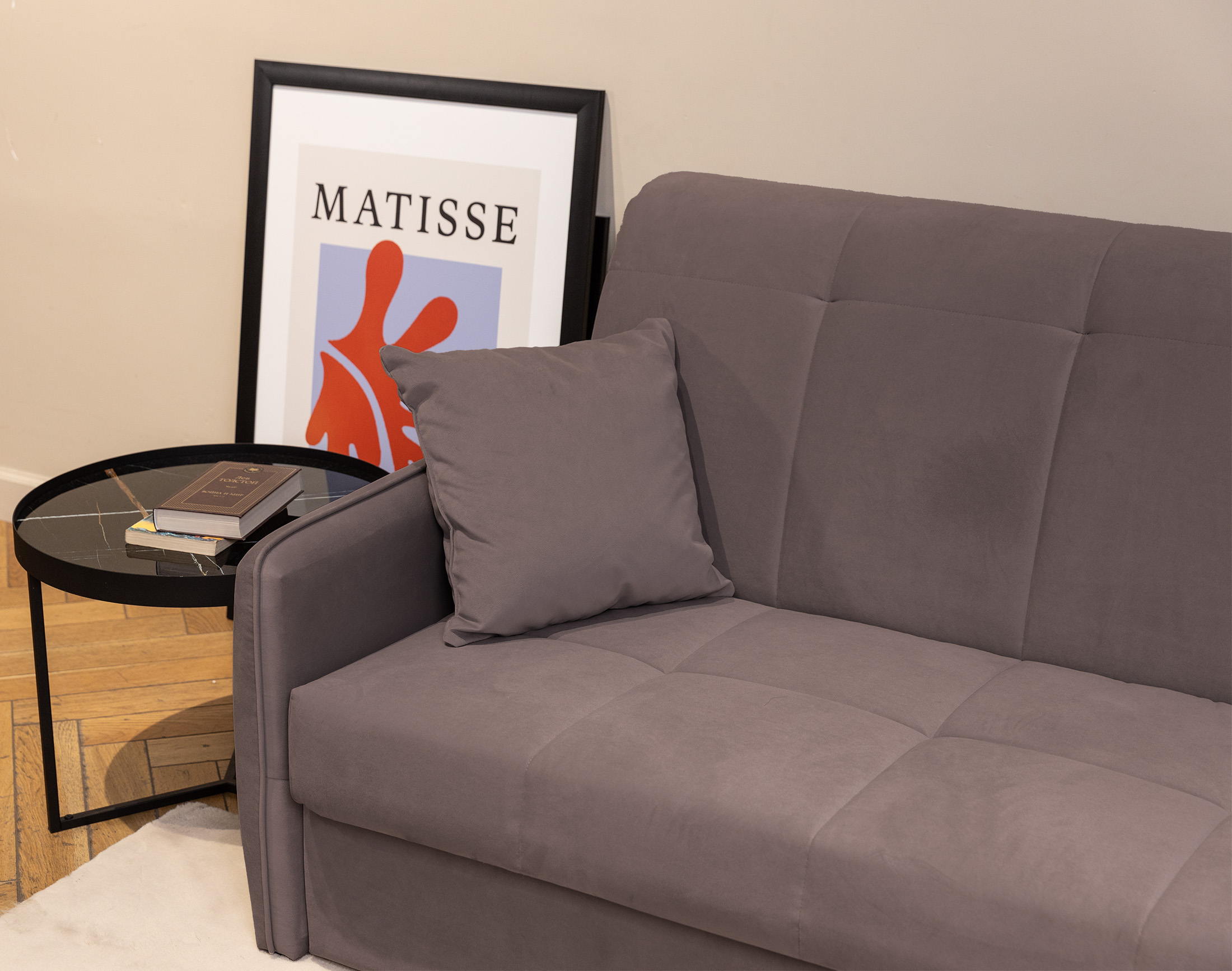 Идеальный пример эргономичной мебели. Небольшой по габаритам диван легко трансформируется в полноценное спальное место для двоих.