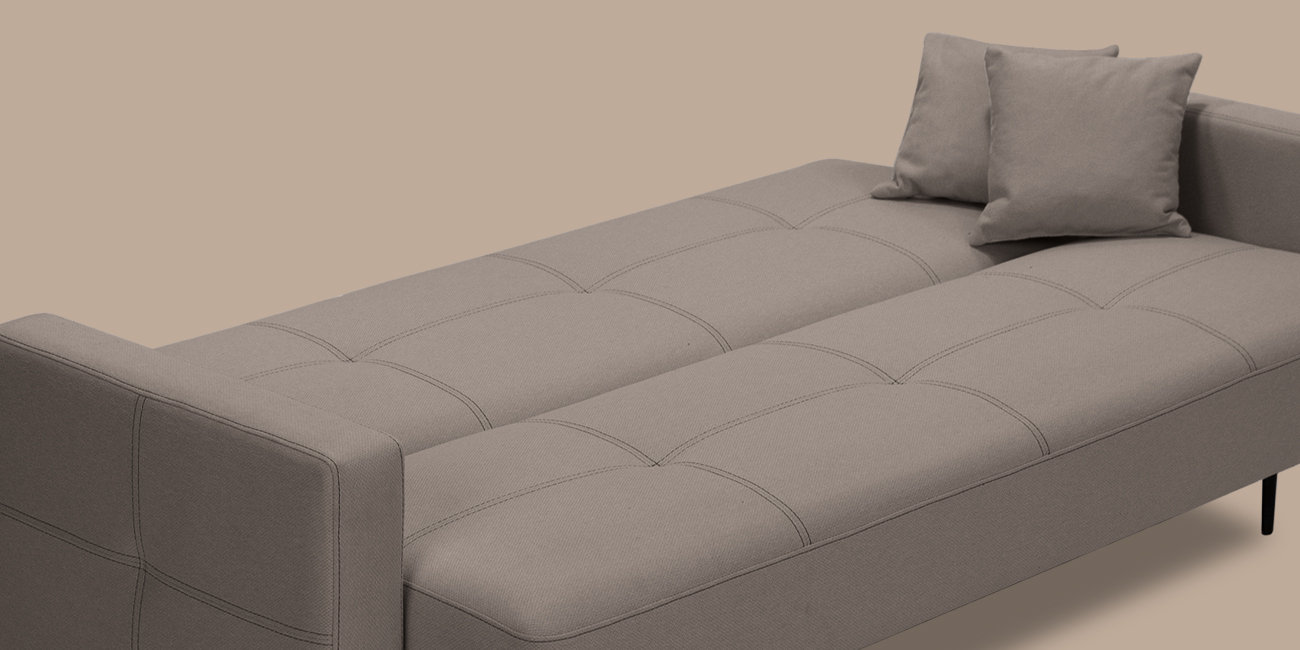 Высокие ножки дивана делают его форму легкой, максимально открывая пространство. Кроме того, такая конструкция упрощает уборку, делая доступным напольное покрытие.
