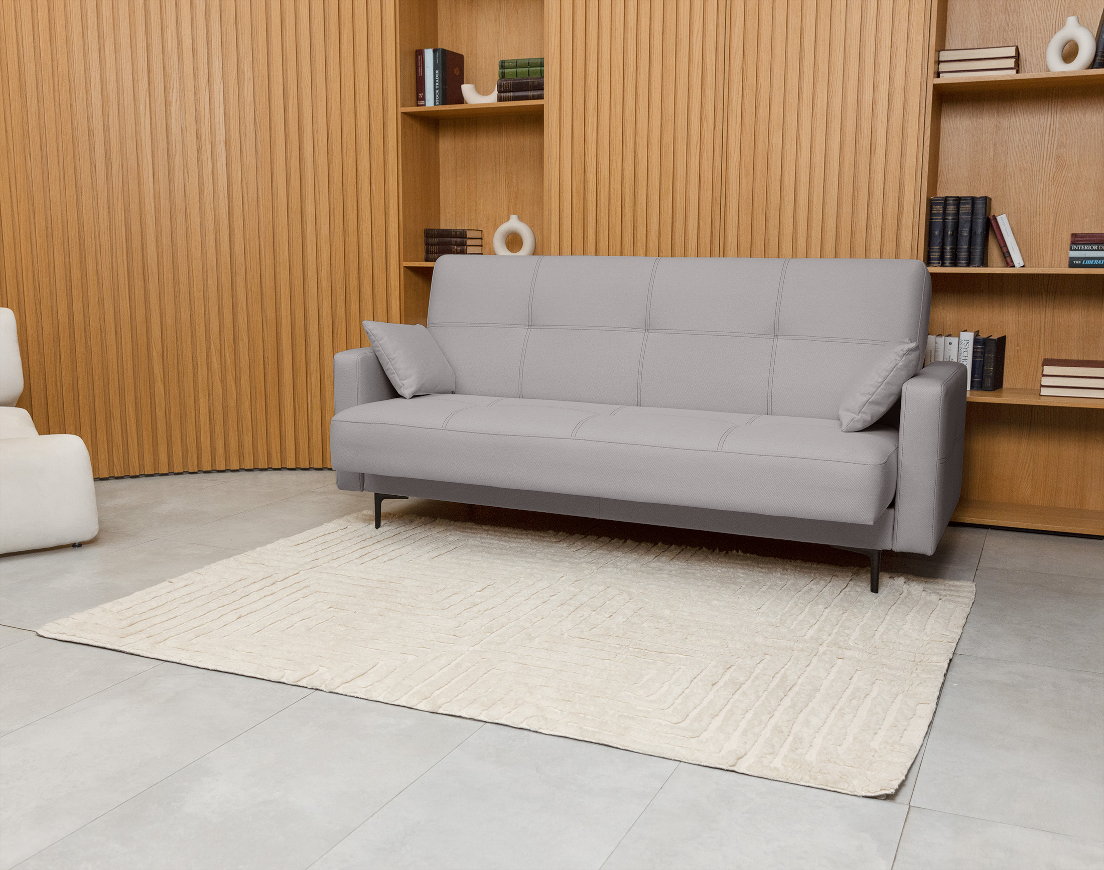 Высокие ножки дивана делают его форму легкой, максимально открывая пространство. Кроме того, такая конструкция упрощает уборку, делая доступным напольное покрытие.
