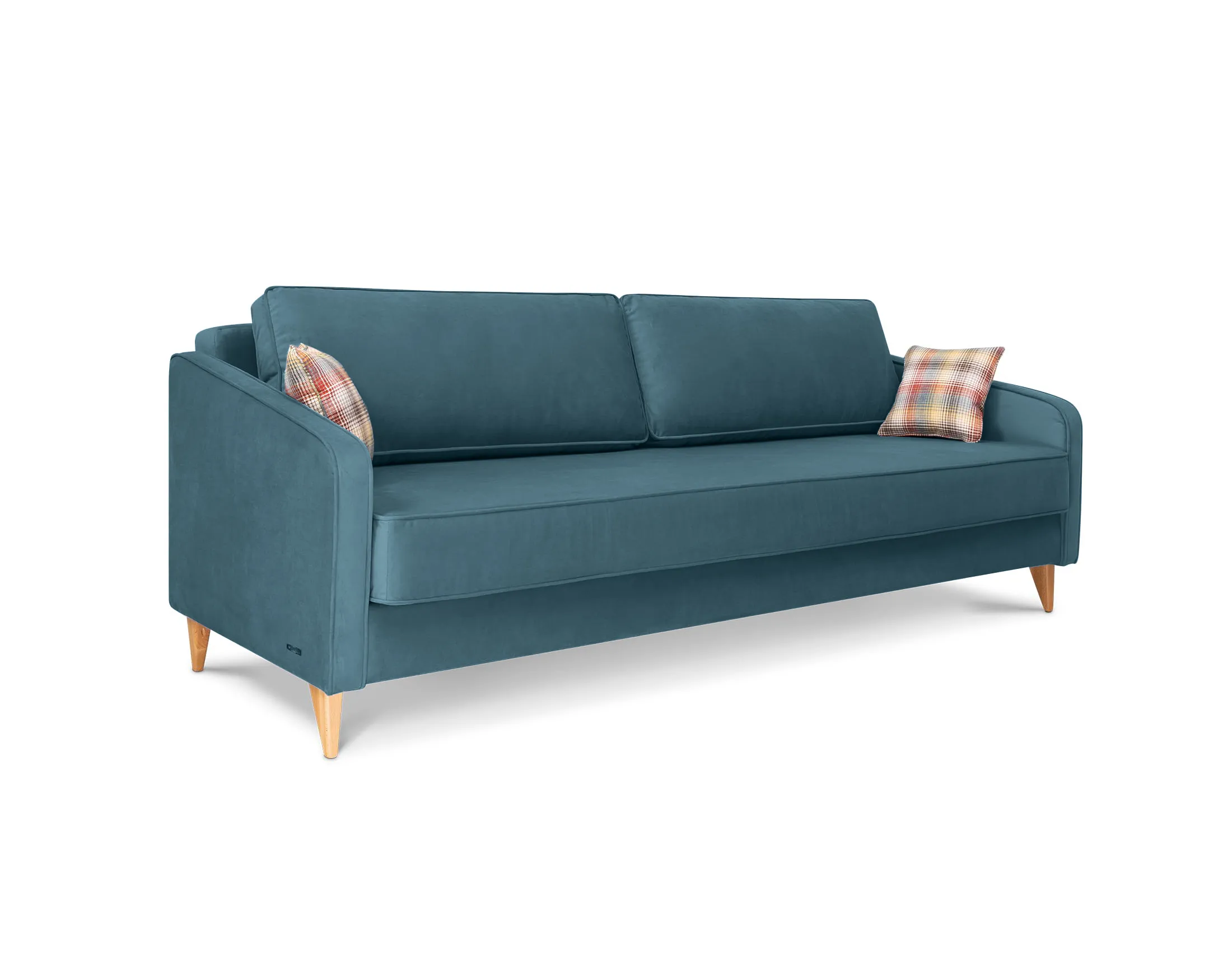 Высокие ножки делают форму легкой, максимально открывая пространство. А натуральное дерево подчеркивает естественность материалов. Кроме того, такая конструкция упрощает уборку, делая доступным напольное покрытие.