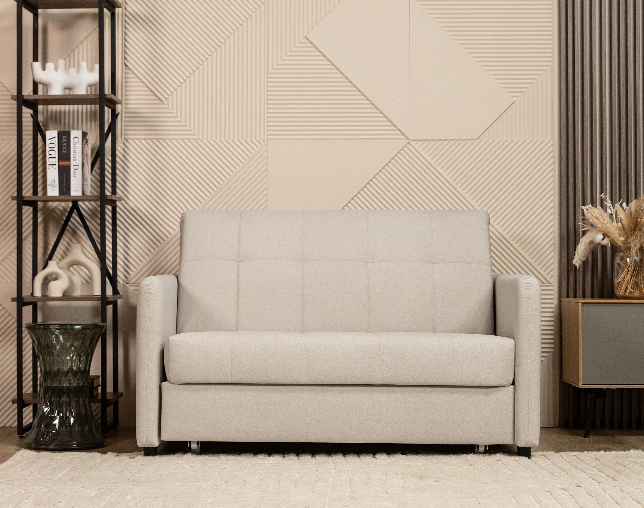 Фактура с эффектом натуральной шерсти делает мебель особенно комфортной и тёплой на ощупь.
