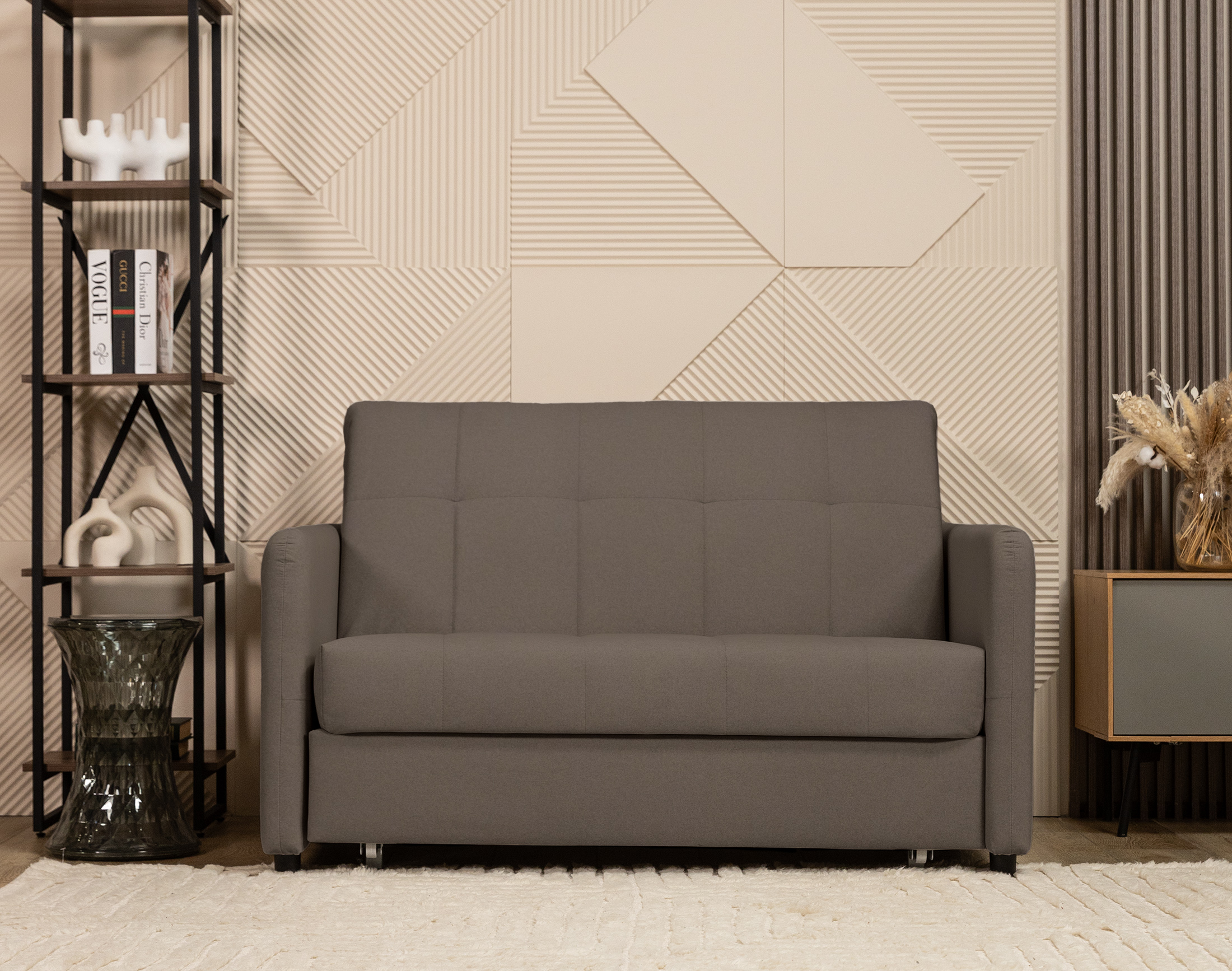 Идеальный пример эргономичной мебели. Небольшой по габаритам диван легко трансформируется в полноценное спальное место для двоих.