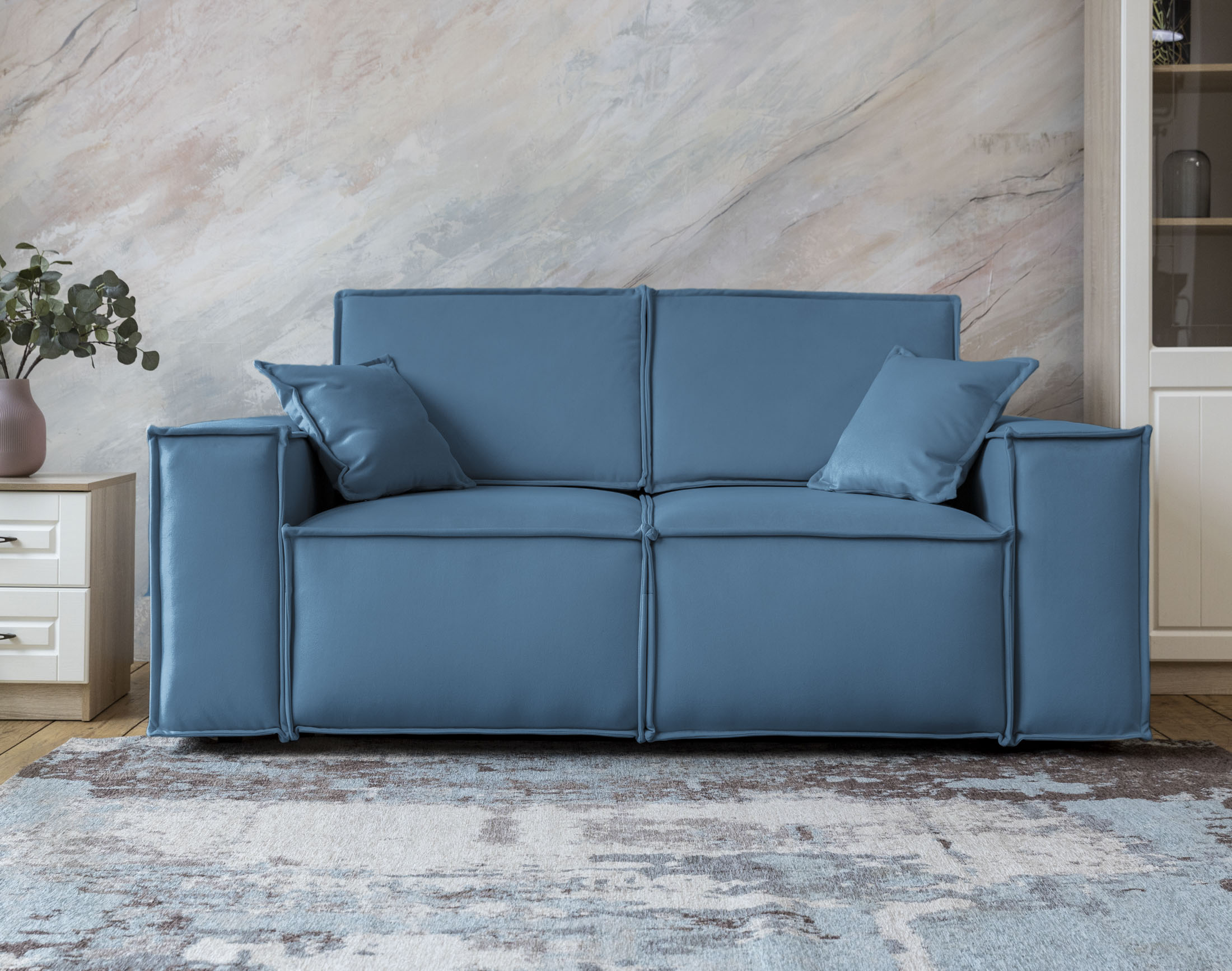 Диван Комо мини Сталь Синий велюр Romano за 100 000 ₽. В наличии!