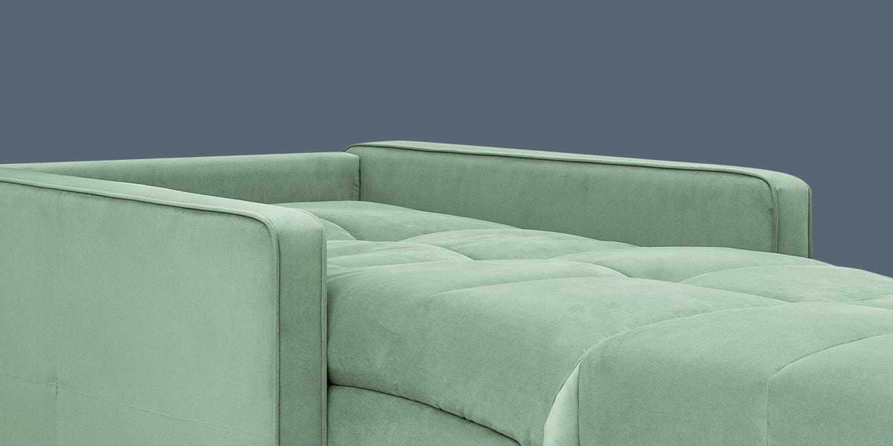 Механизм трансформации устроен по принципу мехов «аккордеона». В сложенном виде — занимает очень маленькую площадь, в растянутом — образует просторное и удобное спальное место. А узкие подлокотники не увеличивают габариты кресла.