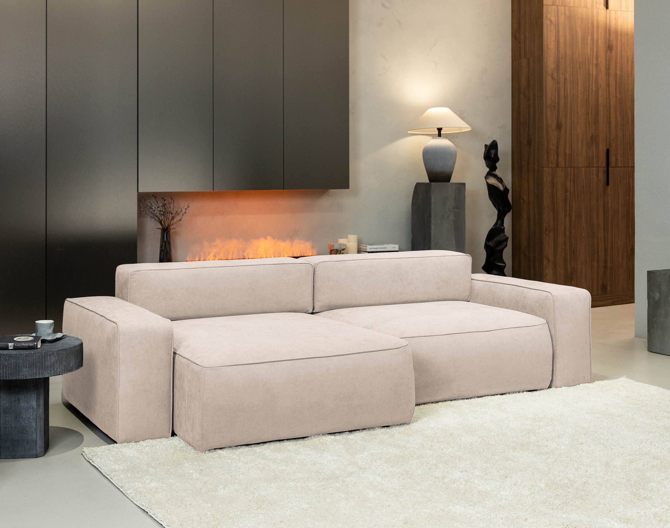 Укороченная угловая часть делает диван компактным, не лишая его вместительности и удобства. Продуманное сочетание короткой и длинной секций создаёт уникальную гармонию — диван, который объединяет все преимущества углового формата с лёгкостью и компактностью прямого.