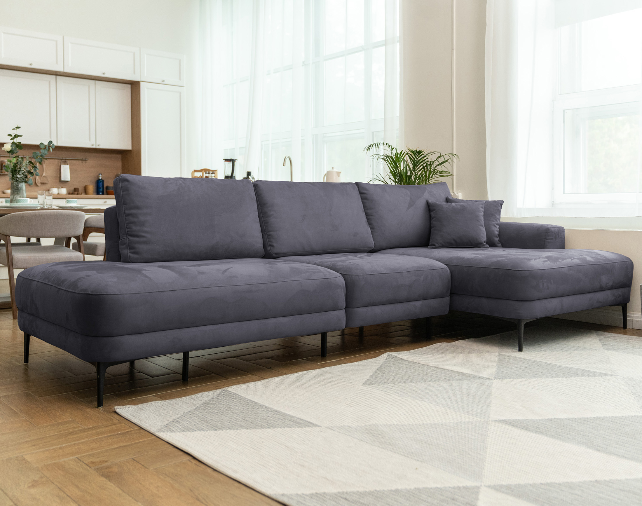 Роскошный и элегантный угловой диван Мальме наши дизайнеры создавали, вдохновляясь эффектными образами одноименного скандинавского города. Обивка из искусственного нубука идеально впишется в ваш интерьер и подарит невероятные тактильные ощущения, а современный наполнитель с эффектом памяти обеспечит полноценный отдых всему телу.