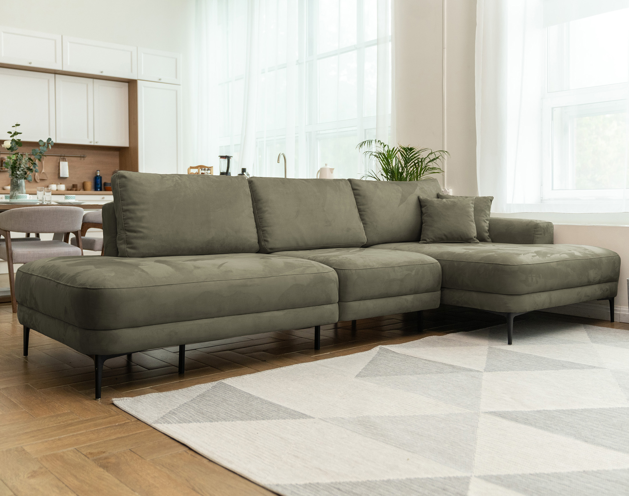 Новый тренд в мягкой мебели. Благодаря высоким ножкам диван выглядит лаконично и элегантно, придавая интерьеру лёгкость и уют. Кроме того, такая конструкция упрощает уборку под диваном.