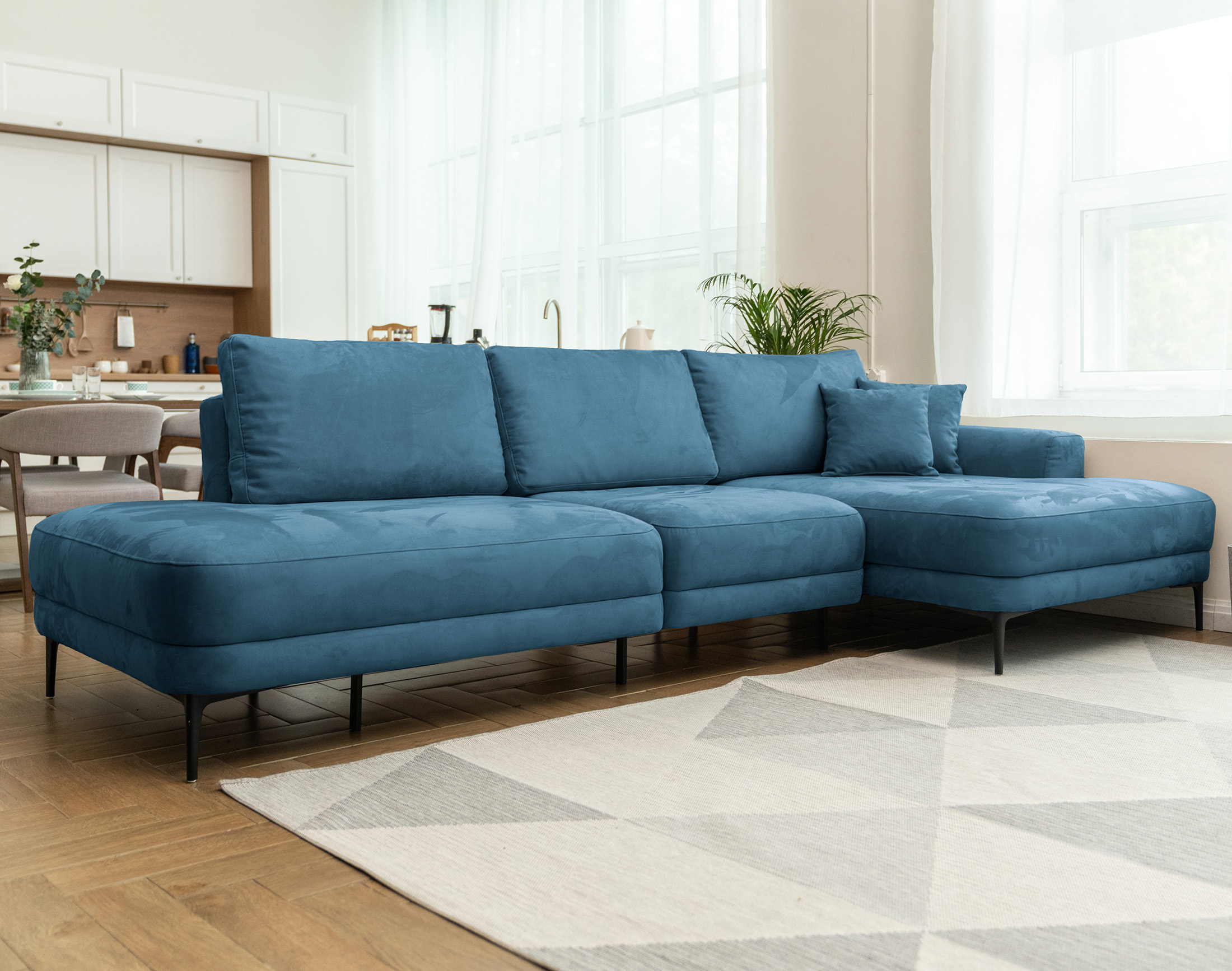 Новый тренд в мягкой мебели. Благодаря высоким ножкам диван выглядит лаконично и элегантно, придавая интерьеру лёгкость и уют. Кроме того, такая конструкция упрощает уборку под диваном..