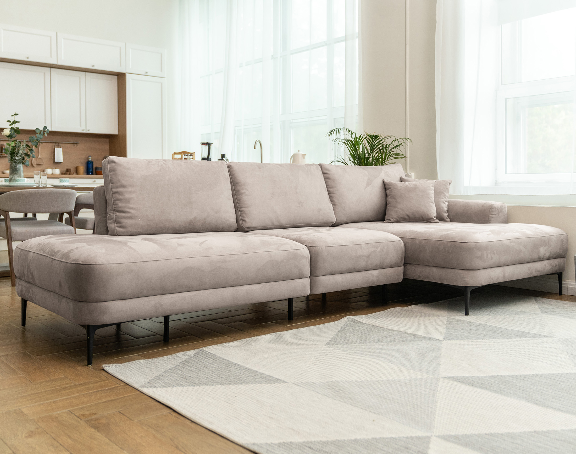 Роскошный и элегантный угловой диван Мальме наши дизайнеры создавали, вдохновляясь эффектными образами одноименного скандинавского города. Обивка из искусственного нубука идеально впишется в ваш интерьер и подарит невероятные тактильные ощущения, а современный наполнитель с эффектом памяти обеспечит полноценный отдых всему телу.