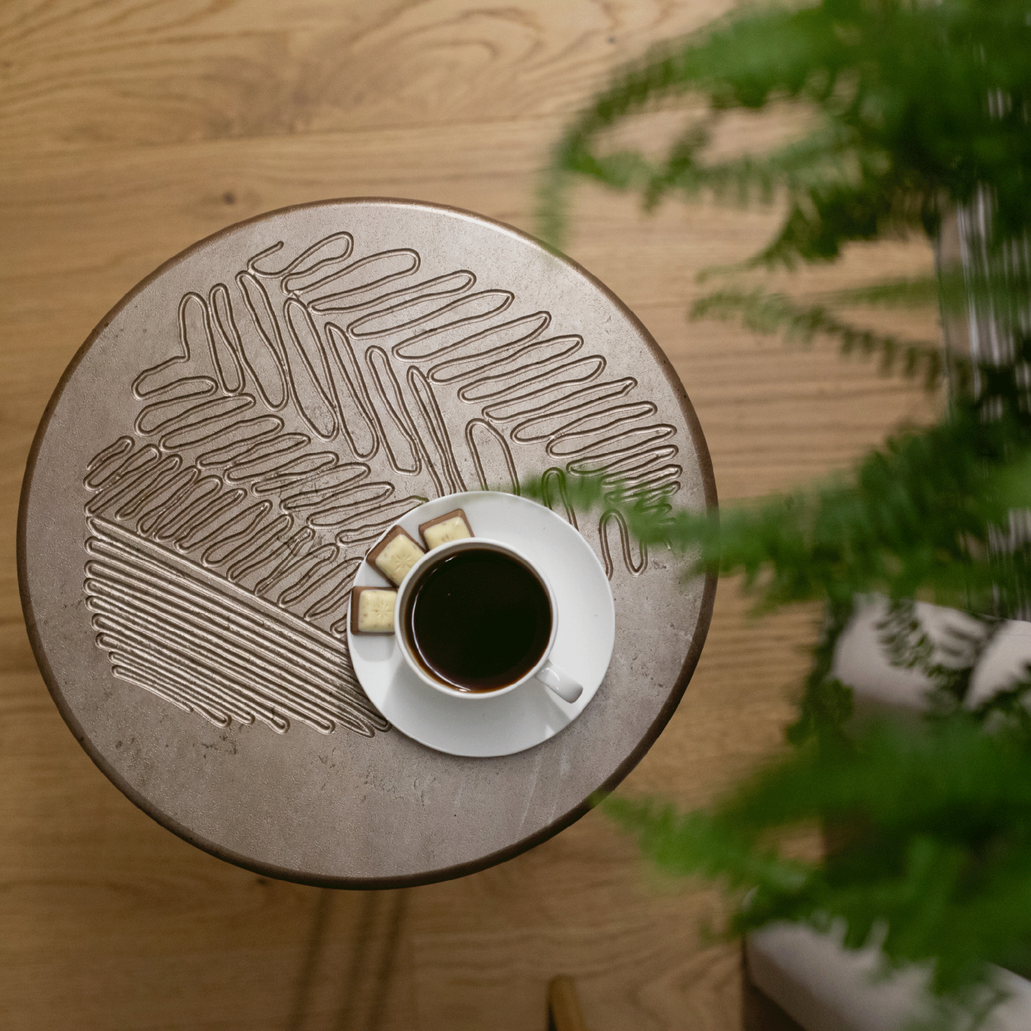Столик Марли станет незаменимым элементом вашего интерьера, привнеся элегантность и стиль в гостиную, спальню или зону отдыха. Компактные размеры позволяют легко разместить его в любом пространстве, а круглая столешница с оригинальным фактурным узором и прочная металлическая ножка придают ему стильный и современный вид.