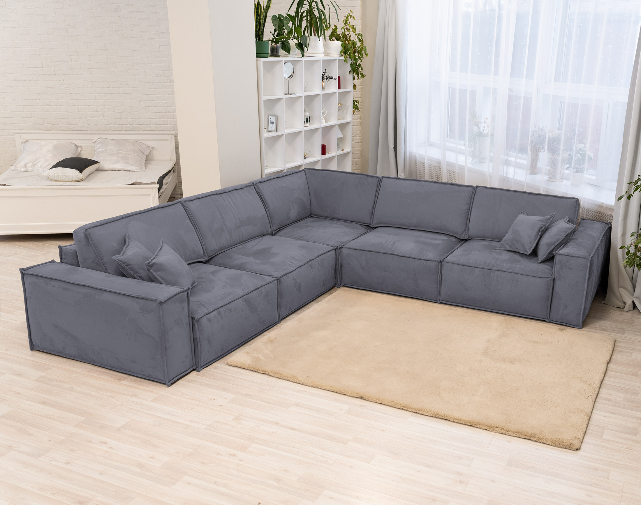 Секция Мьёса Светло-серый велюр Buddy с грязеотталкивающей технологией